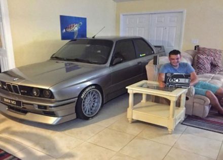 On je odlučio da se prosto ne odvaja od njega, pa je svog ljubimca na četiri točka parkirao direktno u dnevnu sobu.
