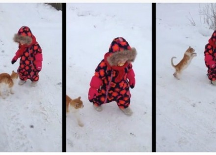 Majka djevojčice snimila je svoju ćerku i napuštenu macu kako zajedno šetaju po snijegu. Čak ni ona nije očekivala šta će se dogoditi samo nekoliko sekundi kasnije…