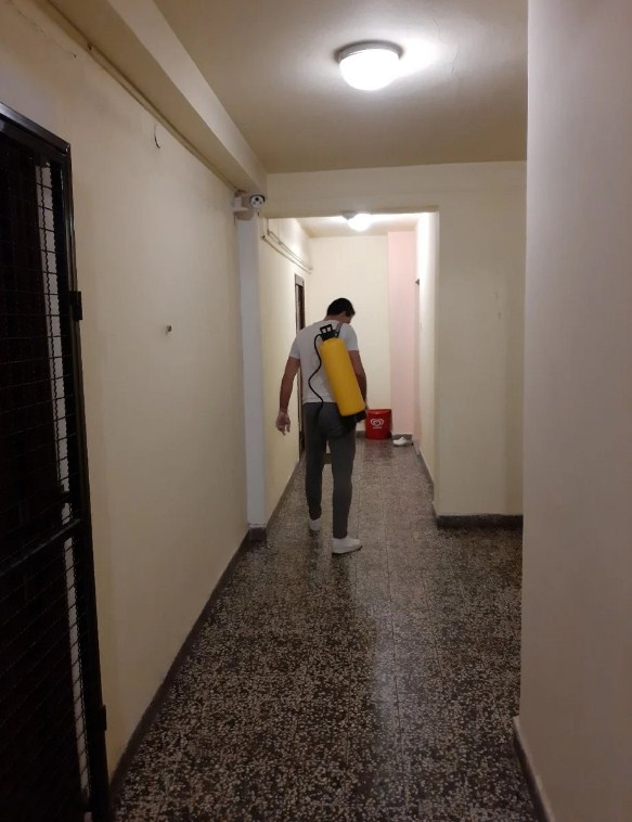 Kućni savjeti treba da osiguraju, a svaki pojedinac u zgradi (osim starijih osoba i hroničnih bolesnika) neka se stavi na raspolaganje da se u zgradi redovno provodi mehaničko čišćenje i dezinfekcija stepenice (sredstvom na bazi hlora – domestos i slično).
