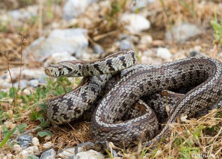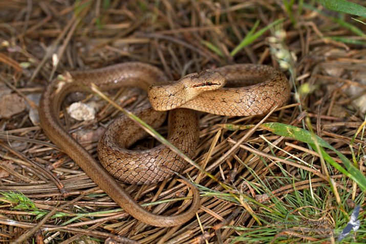 Zmiju otrovnicu ćete razlikovati po tome što ima izraženu trouglastu glavu i dosta sužen vrat, dok kod neotrovnih to nije slučaj.