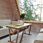 Mala kuhinja i dnevna soba kupaju se u prirodnoj svjetlosti zahvaljujući velikom prozoru duple visine. Klub sto i postolje za zvučnik takođe su izrađeni od recikliranog drveta. Na galeriji od pet kvadrata smještena je spavaća soba.