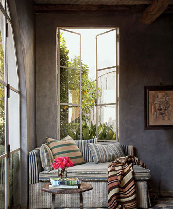Siva se može pojaviti na zavjesama koje krase bijele prozore, pohabanim komadima namještaja, dio bogate biblioteke velikih polica za knjige, kamina, posteljine…