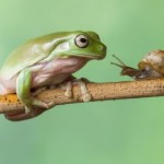 On je posmatrao i fotografisao žabu i puža koji je, polako, ali sigurno napredovao ka njoj. Puž je riješio da se popne žabi na glavu, a njoj to, čini se nije uopšte smetalo. Njemu je to na kraju uspjelo, pa je neko vrijeme zadovoljno sjedio na njoj.