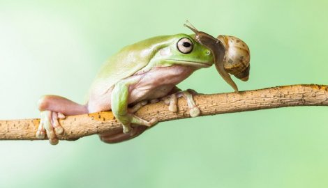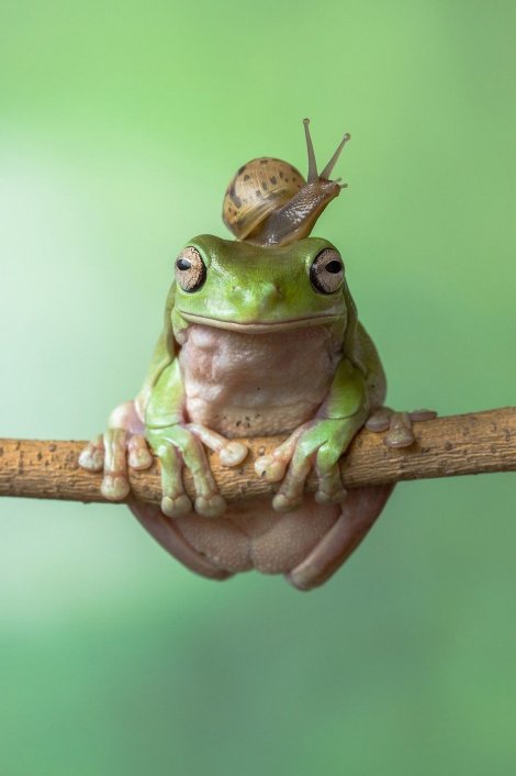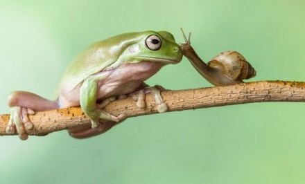 Jedan fotograf iz Indonezije zabilježio je zanimljive trenutke druženja žabe i puža.