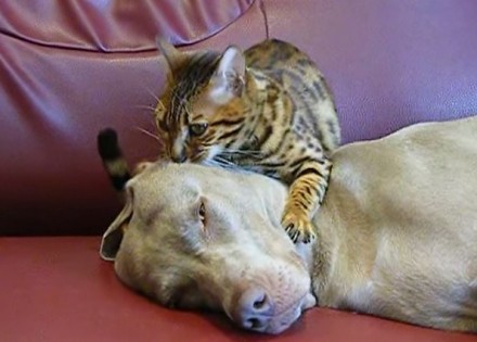 Bengalska mačka Katooschka svom prijatelju psu Willowu odlučila je uljepšati život malom masažom lica. Willow se nije bunio.