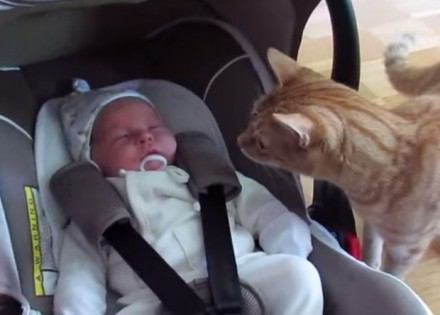 Kada maca prvi put ugleda bebu: Šta je ovo, otkud u mojoj kući? (Video)