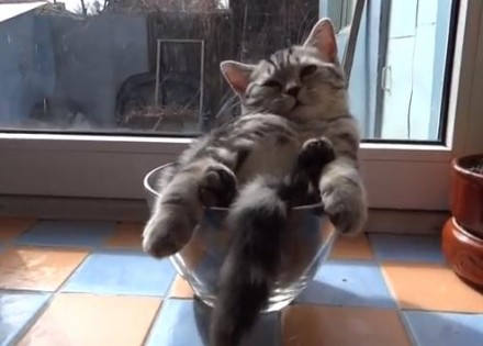 Medeno stvorenje snimljeno je kako se opušta udobno smješteno u staklenoj činiji, pokazujući da ne postoji pogrešno mjesto za odmor, kada vam je on zaista potreban.