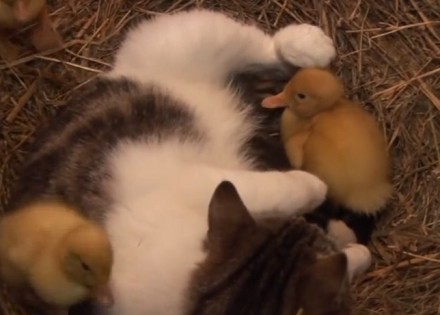 To pokazuje i ovaj video snimak u kojem mama maca grije ne samo svoje mačiće, već i usvojene pačiće koji su ostali bez majke!