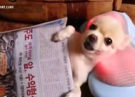 Ova slatka čivava uživala je u masaži šije. Legla je na leđa, a vlasnici su ispod njene glave stavili jastuk koji masira. Riječi su nepotrebne jer se vidi da uživa.