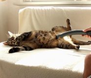 Iako većina mačaka bježi od usisivača jer se boji buke, mačak Bobo jedva čeka da njegov vlasnik uključi usisivač.