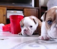 Ništa nije slađe od ovog malog engleskog buldoga koji se prvi put vidi u ogledalu.