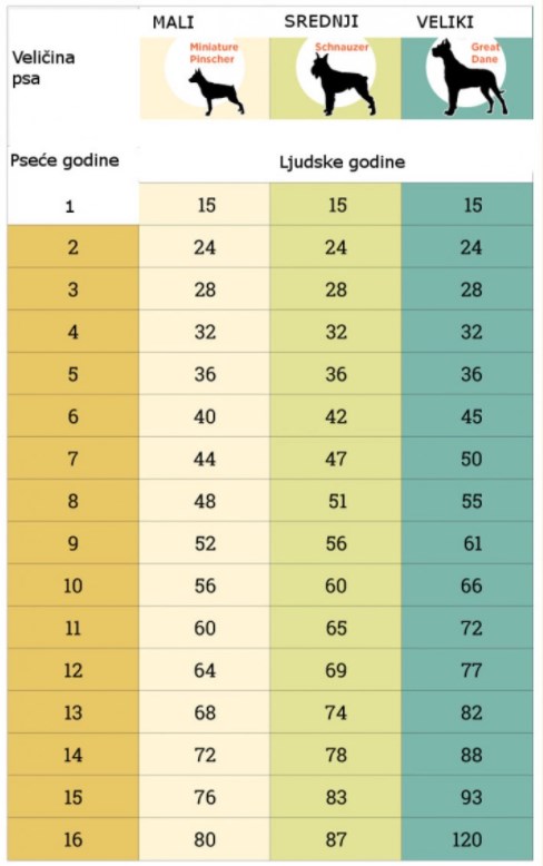 Sigurni smo da većina vlasnika misli kako je jedna ljudska godina jednaka sedam psećih, ali taj podatak nije tačan. Starenje pasa i njihove godine ovise, između ostalog, o njihovoj pasmini. Brzina starenja ovisi o više faktora, a neki od njih su dob, kvalitet prehrane te pasmina. U pravilu su manji psi dugovječniji od velikih, pa će tako jedan maleni maltezer nadživjeti veliku njemačku dogu. Zbog toga je vrlo bitno paziti čime hranimo naše ljubimce.