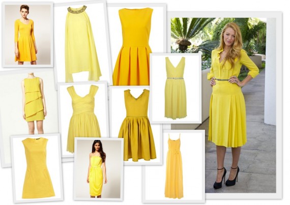 Haljina boje sunca sa slatkim puf rukavima i vintage kaišem, za večernju varijantu ili lepršava žuta haljina sa baletankama i torbom, za dnevnu varijantu.