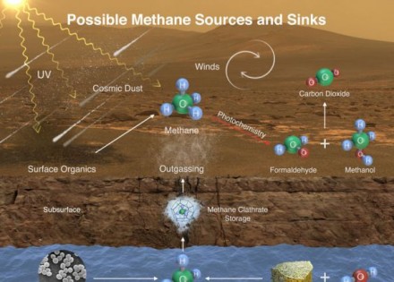 Krajem 2013. i početkom 2014. u četiri slučaja nivo metana na Marsu, na dva mjesta, udaljena svega 200 do 300 metara, iznosio je 7,2 čestice na milijardu volumena, a prije i poslije tih iznenadnih “skokova” koncentracija metana iznosila je svega desetinu tog nivoa.