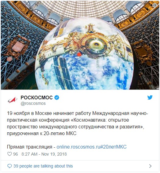 On je održao prezentaciju tokom konferencije posvećene 20. godišnjici Međunarodne svemirske stanice /MSS/.