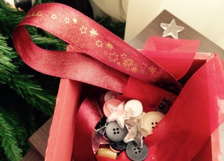 Ukrasni dugmići mogu biti zanimljivi i na jelci. Uvežite ih ukrasnim tračicama i okačite!