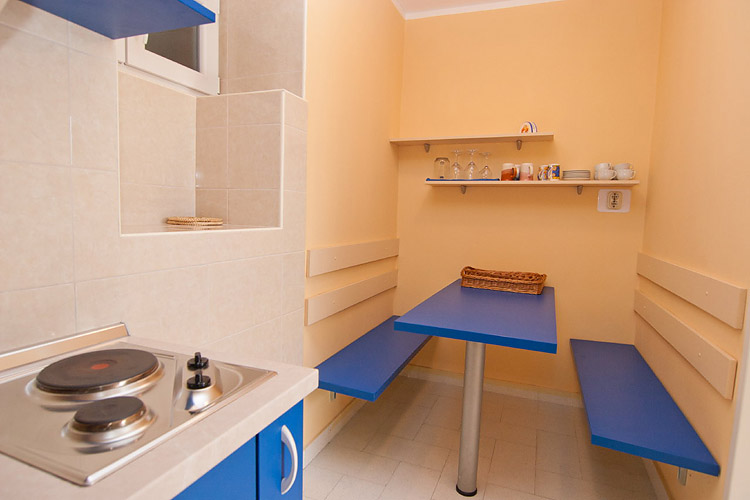 Svi apartmani se nalaze unutar jednog velikog uređenog i kultivisanog dvorišta, svaki u posebnoj zgradi. Od dvorišne ograde do mora – jedne od plaža udaljenost je svega 20 metara. Trgovina je udaljena svega 70 metara. Za sve goste osiguran je parking, ali kućni ljubimci nisu dozvoljeni.