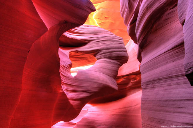 Ono je što posebno zadivljujuće je da se izgled unutrašnjosti kanjona i prelijevanje boja stalno mijenja zavisno od položaja sunca na nebu.