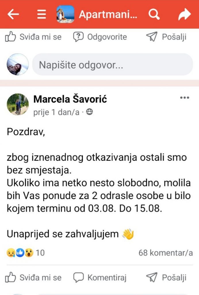 Turisti se po grupama na društvenim mrežama masovno žale da su im iznajmljivači otkazali rezervaciju dan-dva prije puta i to sa, često, ne baš realnim objašnjenjima.