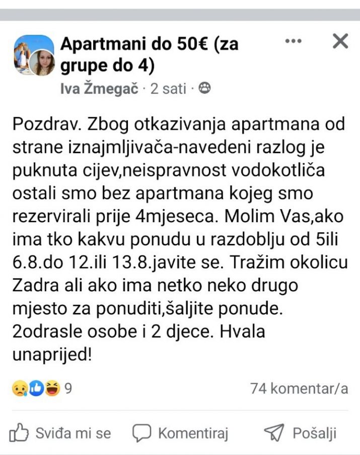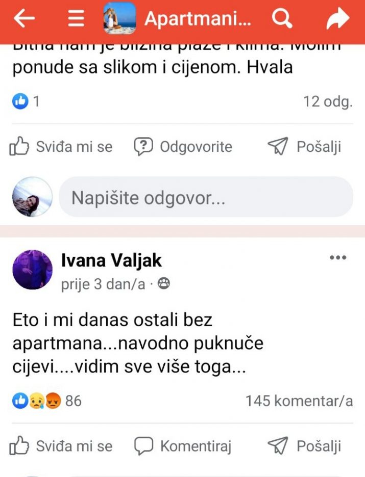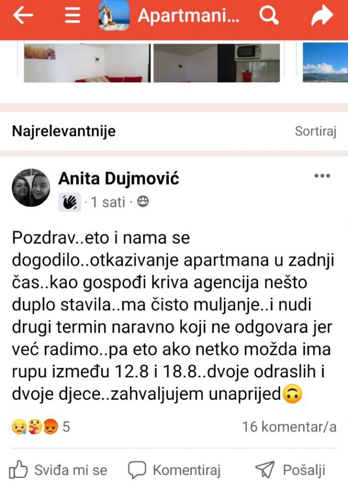 Turisti se po grupama na društvenim mrežama masovno žale da su im iznajmljivači otkazali rezervaciju dan-dva prije puta i to sa, često, ne baš realnim objašnjenjima.