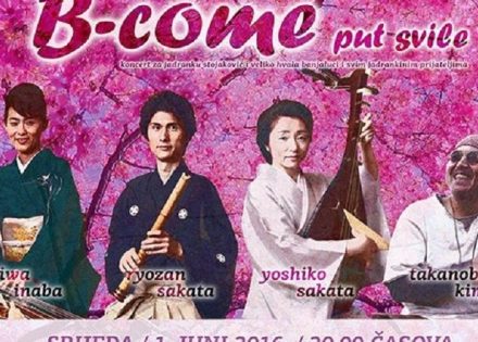 U Koncertnoj dvorani Banskog dvora 1. juna, u 20.00 časova, biće održan koncert muzičara iz Japana “B-come, put svile”, u čast nedavno preminule kantautorke Jadranke Stojaković.