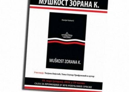 Knjiga Danijela Gatarića “Muškost Zorana K.” biće promovisana u utorak, 1. marta, u 19 časova u Narodnoj i univerzitetskoj biblioteci Republike Srpske u Banjaluci.