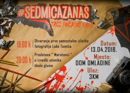 Prije izvođenja komada “Maratonci” biće otvorena izložba mladog fotografa Luke Tomića.