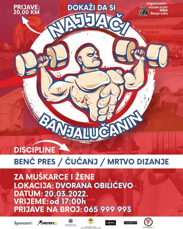 Manifestacija “Dokaži da si najjači Banjalučanin” održaće se i ove godine u dvorani Obilićevo 20. marta u 17 časova.