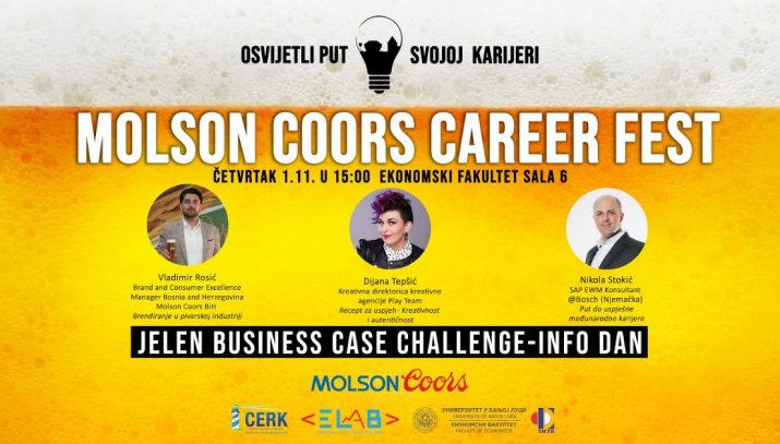 Ovog četvrtka, 1. novembra na Ekonomskom fakultetu Univerziteta u Banjaluci, održaće se “Molson Coors Career Fest”. Ovaj događaj će predstaviti tri izvrsna govornika, koji će svojim pričama i savjetima inspirisati prisutne studente na kreiranje sopstvenih uspješnih poslovnih priča.