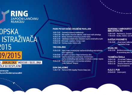 „Noć istraživača“ počinje u 18:00 časova u Domu Omladine. Prvobitno je bilo najavljeno da će se događaj održati na otvorenom, ali je lokacija promijenjena zbog loših vremenskih uslova, dok ulaz na sve programe ostaje besplatan.