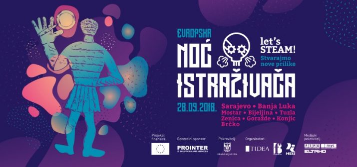 Sedmu godinu za redom u Bosni i Hercegovini se obilježava najzabavnija noć nauke i istraživačkog rada, “Evropska Noć istraživača 2018” pod sloganom “Let’s STEAM: Stvarajmo nove prilike”. Ove godine manifestacija će biti obilježena u petak, 28. septembra, sa početkom u 17.00 časova, u devet bh. gradova – u Banjaluci, Bijeljini, Brčkom, Goraždu, Konjicu, Mostaru, Sarajevu, Tuzli i Zenici.