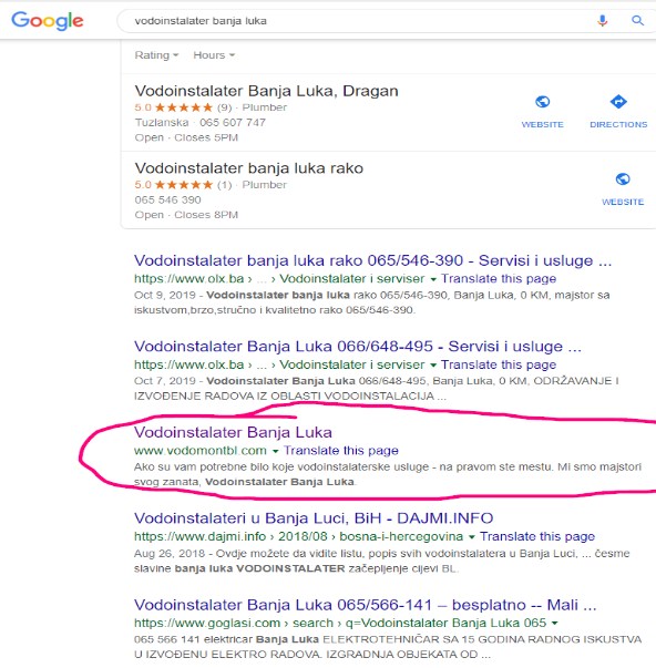 Pokušali smo vidjeti da li je stvarno tako u praksi i razmijenili nekoliko riječi o važnosti da budete prvi na Google-u, sa Draganom Đukićem, vlasnikom firme “Vodomont Banjaluka”. Ova firma je prva na Google-u za ključne riječi “vodoinstalater Banja luka”.