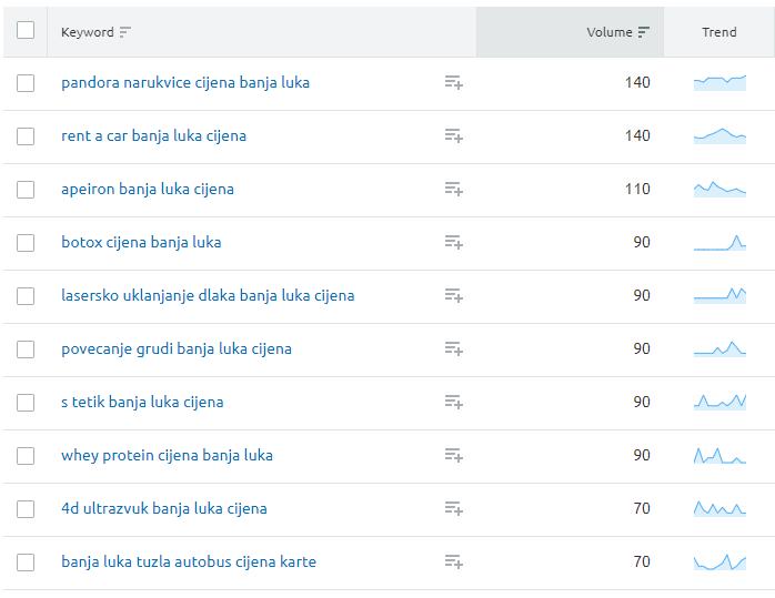 Zapravo, nije uopšte važno čime se bavite, jer ljudi svakodnevno kucaju hiljade termina, pa tako pretrage izgledaju ovako: