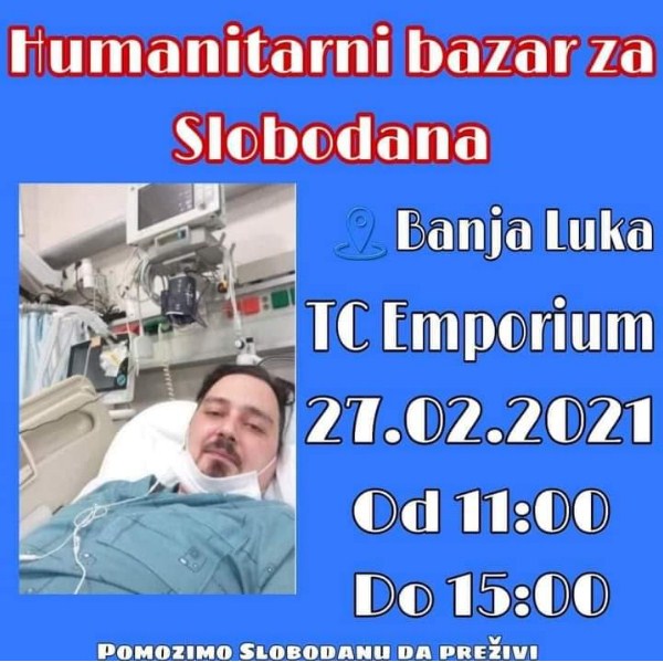 “Molimo sve humane građane da nam se pridruže u ovoj akciji, te da posjete ovaj događaj. Takođe pozivamo i sve druge humanitarce iz drugih opština i gradova u Republici Srpskoj da se pridruže i organizuju humanitane bazare i druge akcije kojima ćemo doprinijeti što bržem prikupljanju novca za našeg Slobodana”, naveli su u ovoj organizaciji.