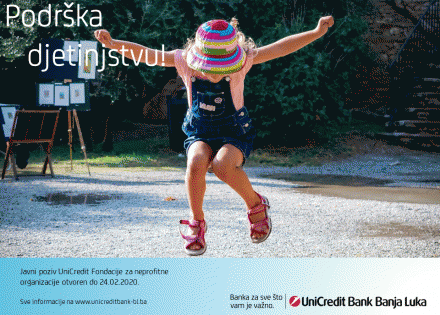 Sa ciljem podrške projektima posvećenim pružanju pomoći djeci i mladima do 18 godina, UniCredit Fondacija i UniCredit Banka Banjaluka objavili su javni poziv pod nazivom „Podrška djetinjstvu”.