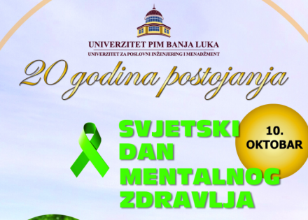 Svjetski dan mentalnog zdravlja pod sloganom ,,Briga o mentalnom zdravlju – ulog u bolju budućnost“, biće obilježen u ponedjeljak 10. oktobra od 12.00 časova na Univerzitetu PIM u Banjaluci.