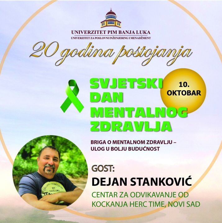 “Osim niza aktivnosti u organizaciji Filozofskog fakulteta, studijskog programa Psihologija, gost Univerziteta PIM biće Dejan Stanković, osnivač Centra za odvikavanje od kockanja ,,Herc Time” (Zbogom kockanje) iz Novog Sada, autor tri knjige koje se bave problemom patološkog kockanja i kreator programa za odvikavanje od zavisnosti od kockanja. Naš gost će govoriti o uzrocima, prevenciji i posljedicama patološkog kockanja”, saopštili su iz Univerziteta PIM.