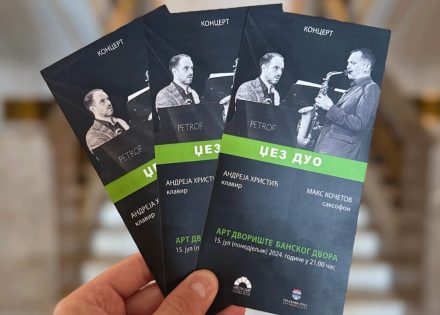 Koncert džez dua koji čine Maks Kočetov na saksofonu i Andreja Hristić na klaviru biće održan 15. jula od 21 čas u Art dvorištu Banskog dvora.