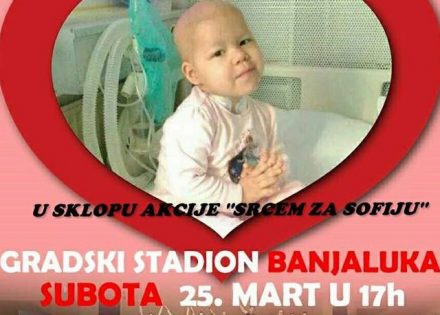 U subotu, 25. marta sa početkom u 17 časova na Gradskom stadionu u Banjaluci biće održan humanitarni trening u sklopu akcije “Srcem za Sofiju”. Na ulazu u stadion biće postavljena kutija za dobrotvorne priloge. Iznos od dobrotvornih priloga biće uplaćen na žiro račun za liječenje trogodišnje Sofije Mićević.