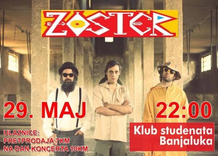 Koncert mostarskog benda Zoster će biti održan 29.maja u KSB-u! Bend Zoster će dio svog honorara dati u humanitarne svrhe kao pomoć onima kojima je najpotrebnija i kao svoj doprinos ugroženima u poplavama.