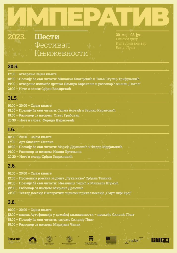 Šesti regionalni festival književnosti “Imperativ“ biće održan u Banjaluci od 30. maja do 3. juna.