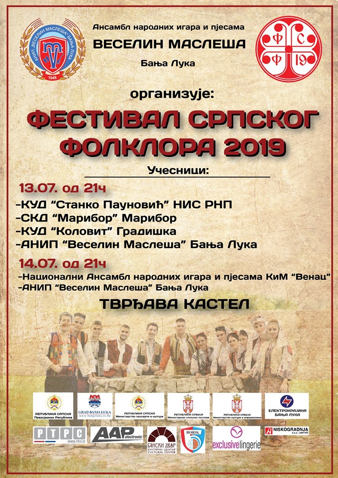Ansambl narodnih igara i pjesama „Veselin Masleša“ Banjaluka organizuje „Festival srpskog folklora“ koji će se održati 13. i 14. jula na tvrđavi Kastel, sa početkom od 21 čas.