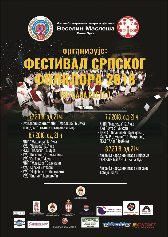Ansambl narodnih igara i pjesama “Veselin Masleša” Banjaluka organizuje treći po redu “Festival srpskog folklora” od 5 do 8. jula na tvrđavi Kastel, sa početkom od 21 čas.