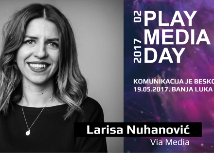 Ovogodišnji Play Media Day ugostiće eksperticu za digitalnu promociju Larisu Nuhanović, koja će predstaviti temu „Online trend za tvoj brend“. U online marketing industriji se konstantno rađaju novi trendovi, ali nije svaki trend za svaki brend. Imaćete priliku saznati kako primijeniti nove trendove u skladu s vašim mogućnostima, a kada je najbolje da ih jednostavno preskočite.
