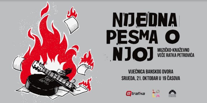 “Nijedna pesma o njoj” naziv je muzičko-književne večeri koju će 21. oktobra u banjalučkom Banskom dvoru održati pjesnik iz Beograda Ratko Petrović. Događaj počinje u 19 časova, a organizatori su Udruženje građana eTrafika.net, magazin Lola i Kulturni centar Banski dvor.