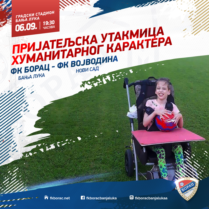 Osim revijalnog, meč Banjalučana i Novosađana imaće i humanitarni karakter. Naime, banjalučki premijerligaš danas se oglasio saopštenjem, u kojem ističe da će sav prihod od prodatih ulaznica biti doniran djevojčiči Sari Vujinović, koja od rođenja boluje od cerebralne paralize i epilepsije, i njenom ocu Darku i to za kupovinu vozila prilagođenog njoj.