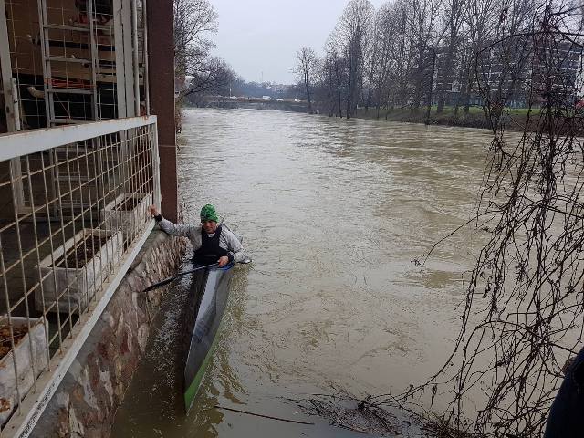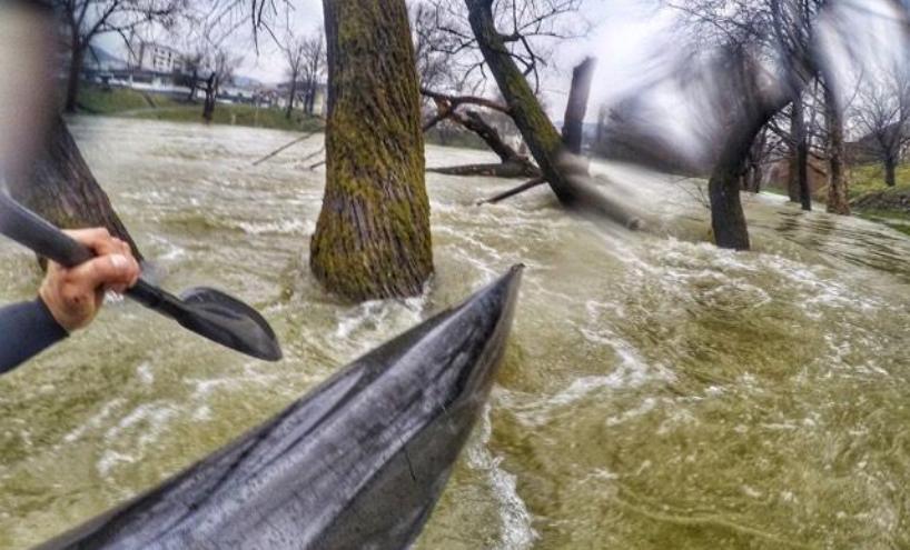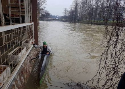 Nabujala rijeka Vrbas, nije mu predstavljala prepreku da odradi svoj redovni trening. Ovaj put, umjesto “kajakaških kapija” Savić je na svojoj dnevnoj ruti izbjegavao stabla duz rijeke Vrbas. Kako je to izgledalo, vidi se iz priložene fotografije.