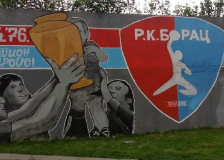 Najvjerniji navijači RK Borac m:tel, u znak zahvalnosti rukometašima koji su u Banjaluku donijeli titulu šampiona Evrope prije 41 godinu, danas su nacrtali grafita na zidu Akvane, preko puta SD Borik.