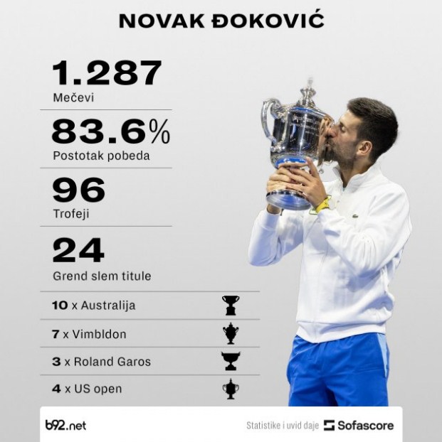 Posebno se dodaje da je Đoković u međusobnom skoru bolji od dvojice najvećih rivala. Protiv Nadala ima skor 30:29, a protiv Federera 27:23.