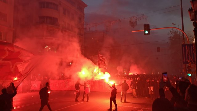 Naime, iako je od strane grčkih medija najavljeno da je zajedničko pješačenje navijača Crvene zvezde i Olimpijakosa zabranjeno, pristalice ova dva kluba u velikom broju su krenule prema stadionu. Zajedno, kako su i najavili da će, uprkos zabrani, uraditi.